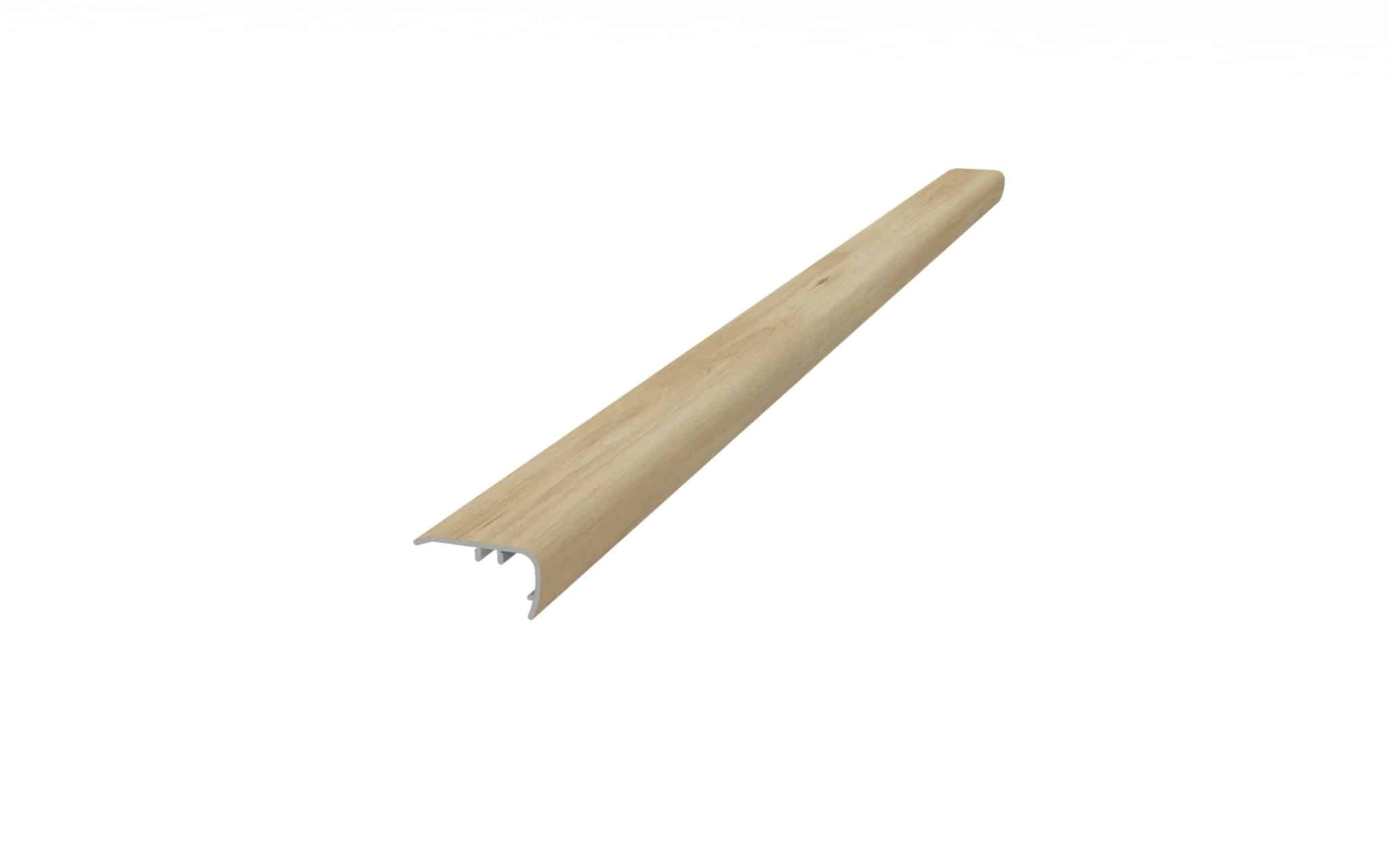 Everlux Basic Overlap Stair Nose Trim creates an attractive threshold and provides the proper overhang for a transition from one floor level to another. Sometimes referred to as a bullnose. It can be used on the outside corner of a stair, as a step into a sunken living room or a landing.