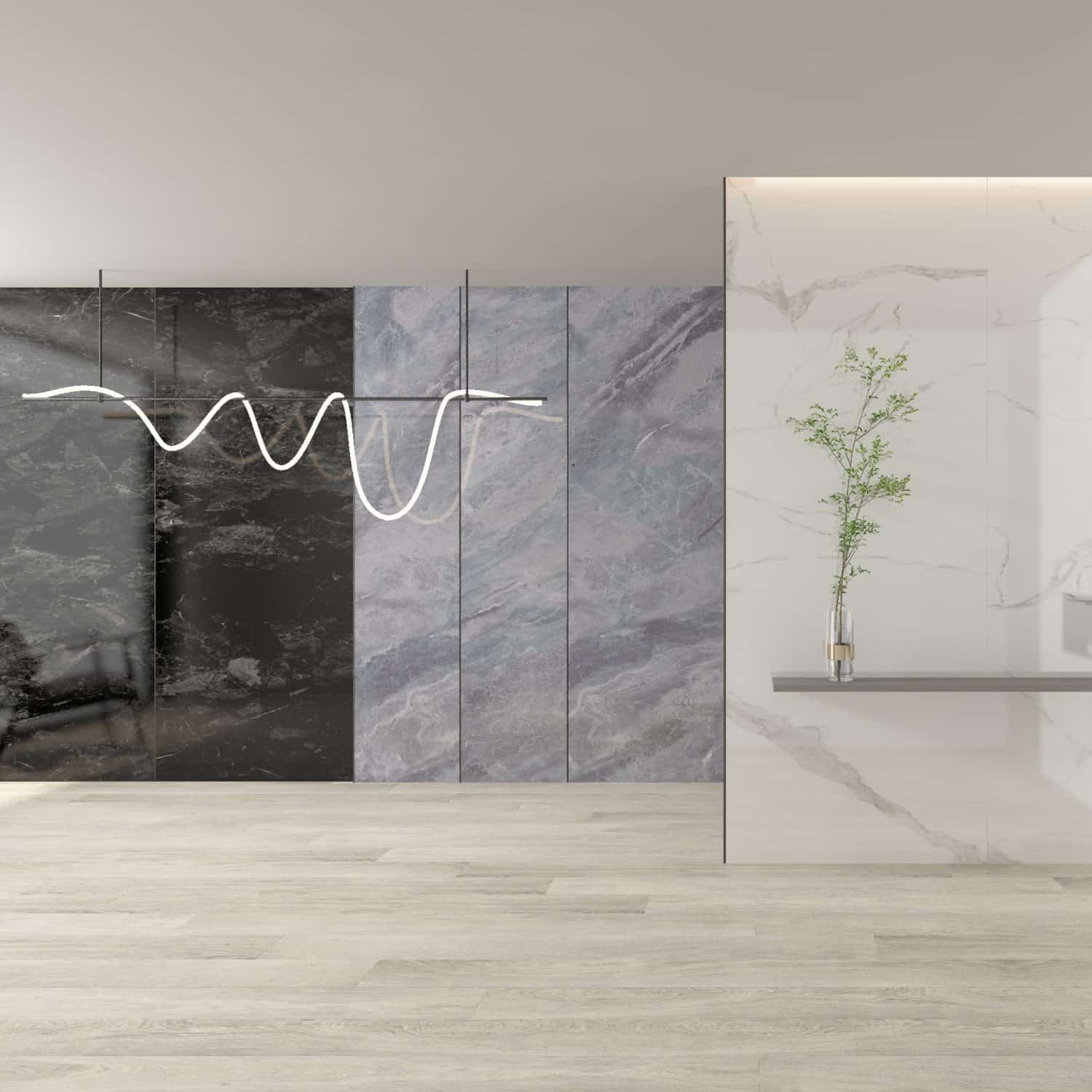 Bring timeless elegance to any interior with WALLS Marble Panels. Designed to replicate the luxurious look of natural stone, these lightweight panels are available in stunning shades like Blanco Ibiza, Marengo Gray, and Bardiglio Gray. Perfect for residential or commercial spaces, they offer the refined beauty of marble with modern durability and easy maintenance. Crafted for precision and simplicity, the panels feature a nail-free installation using tongue-and-groove joints or aluminum trims for a seamless finish. Paired with matching corner, edge, and skirting trims, WALLS Marble Panels deliver a polished, cohesive look that transforms ordinary walls into sophisticated design statements.