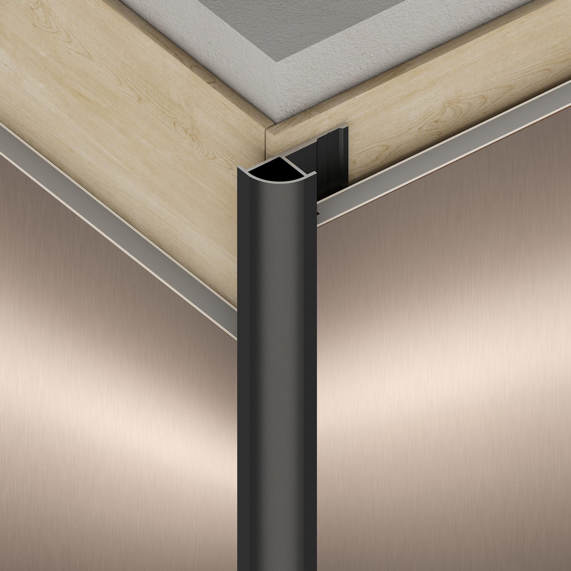 The WALLS Metallic Round Outside Corner Trim offers a smooth, curved finish where two panels meet at an outward-facing corner. Blending form and function, its rounded profile softens sharp edges while providing durable protection against impact and wear. Designed to coordinate perfectly with the WALLS Metallic Panel system, it delivers a refined, modern look with added elegance and safety for any interior space.